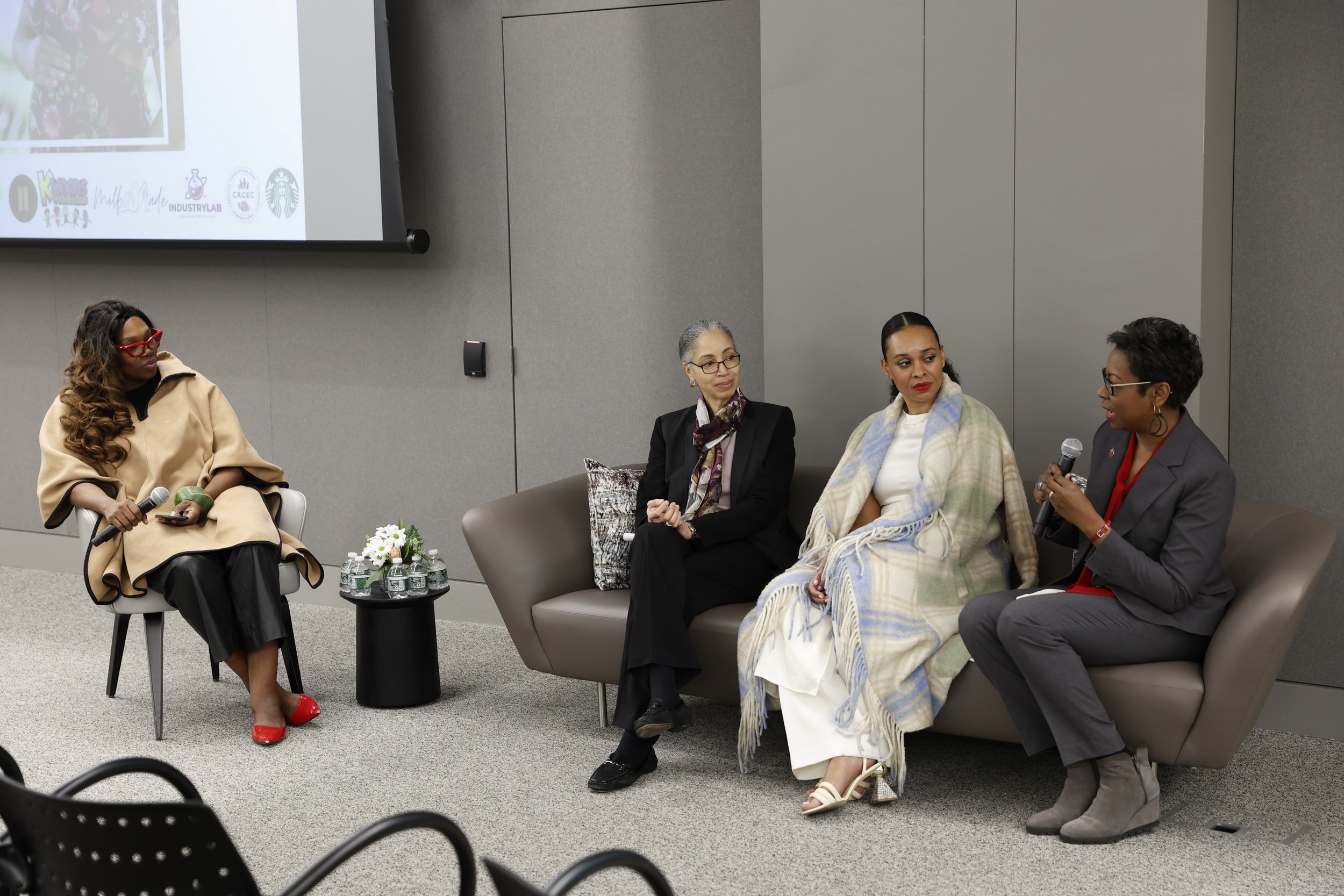 Mainstage Panel, moderated by Jennifer G Jennings, Panelist left to right: EmblemHealth Chief Medical Officer Dr. Ashton, Founder of MilfMade and Full Spectrum Certified Doula Allegra White and The Reverend Dr. Violet Dease Lee.